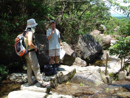 This is the highlight of the whole trip 龍尾朝天 (Sky-Pointing Dragon Tail). In dry seasons, one may attempt the rocky surface on the left of the waterfall. Or it is much recommended to take the faint path on the right of the cliff, it is much much safer.