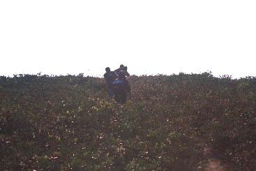 First half of the trail is on open mountain ridge. The second half is embraced by short trees and birds' song. The short trees shield you from any strong wind and strong sunshine, I feel the tenderness of wilderness here.