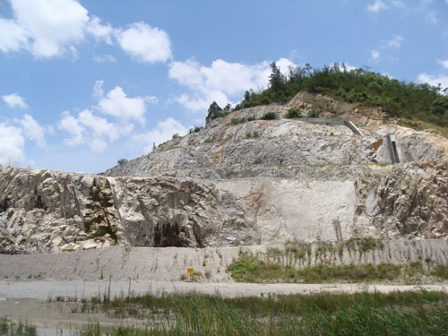 | There is a foot path leading you to Lam Tei Reservoir (藍地灌溉水塘) from the mine. You may find some graffiti showing the direction to the reservoir. |